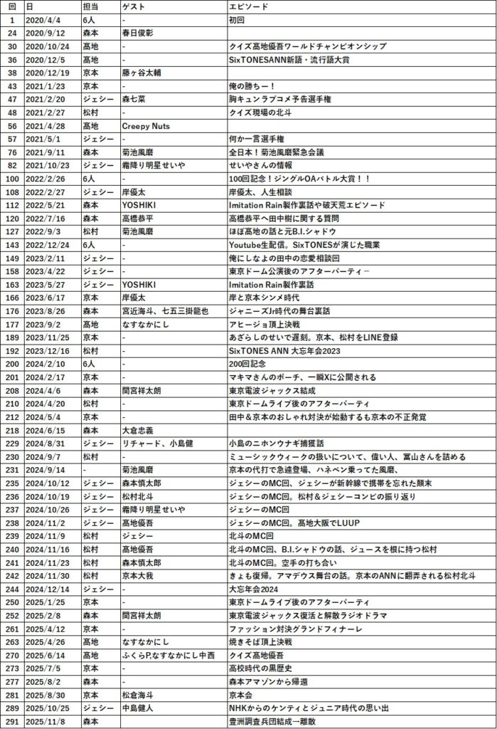 SixTONES ラジオ ゲスト一覧 entame 2025.12.032025.12.06 SixTONESのラジオ、オールナイトニッポンサタデースペシャルにゲストが来た回と個人的にリピしてしまう面白回一覧